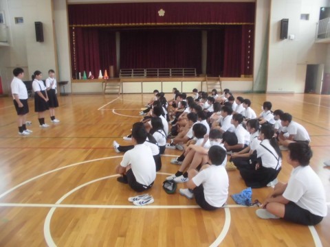 全校朝礼後,明日の「連合運動会を励ます会」の流れを確認したり,実行委員が準備を進めたりしていました!