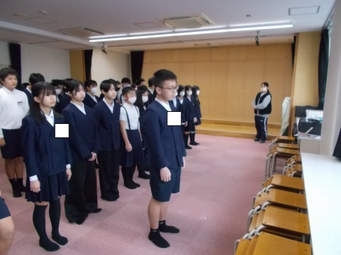 1時間目に音楽室で,進行の流れの確認や合唱の練習などを行いました。