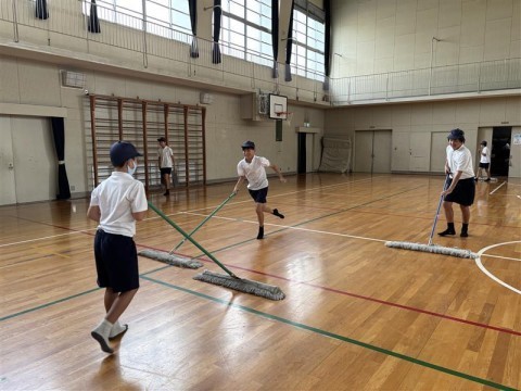 体育委員会は、「なわとび集会」について話し合ったり、体育館の掃除をしたりしました。