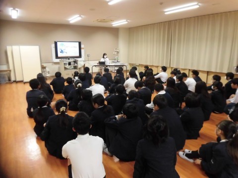 5限目、堺市総合医療センターより、がん性疼痛看護認定看護師の方に来て頂き、6年生にがんについてのお話をして頂きました。