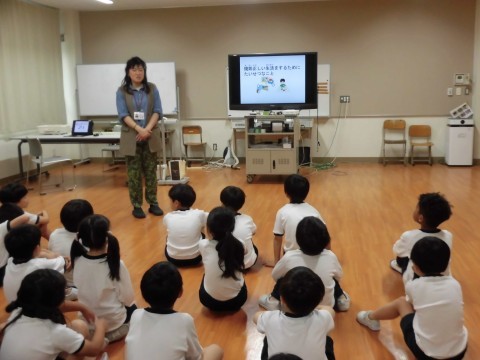 これから、1年間過ごすにあたり、規則正しい生活の仕方についてクイズ形式で確認し、これから元気に過ごすための学びの時間となりました。