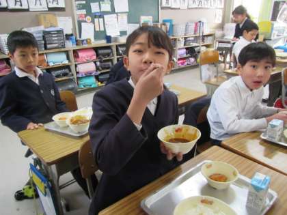 校外学習でよく歩いた3年生!お腹もすいたことでしょう。いっぱい食べようね♪