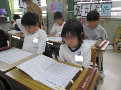 「思い出のアルバム」をリコーダーで演奏します。まずは、お手本を聞きながら音階を確認していました♪