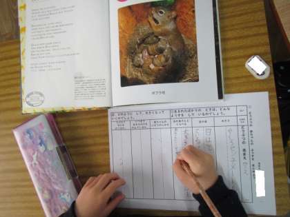 説明文「どうぶつの赤ちゃん」の学習のまとめとして、自分で選んだどうぶつの赤ちゃんについての文章を書きます。みんな楽しそうに取り組んでいました♪