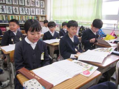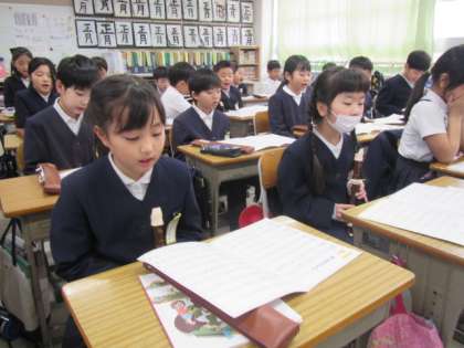 「思い出のアルバム」のリコーダー演奏に取り組みます。楽譜に音階を書き込み、歌っていました。2部合奏に取り組みます。楽しみですね♪