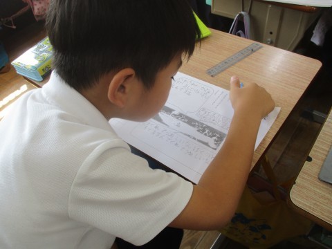 くじらぐもに乗った時の気持ちを想像し,吹き出しに書いてみました。