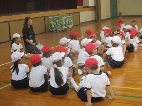 円の外側から中央の的にめがけてボールを投げます。中には的にボールをあてさせないよう相手チームがいます。