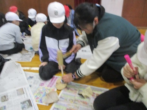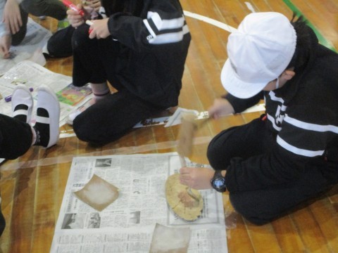 スプーンの持つところをやすりで磨きながら,自分のオリジナルの形に変えていきます。