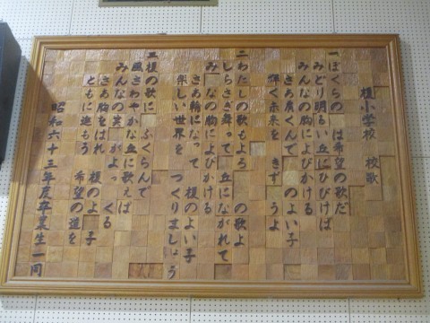 さて、本校体育館に飾られております昭和63年度卒業生による校歌の卒業制作ですが、経年劣化により、制作された文字板が落下する事態が発生しております。