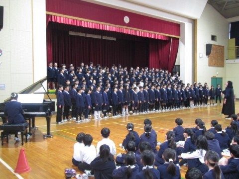 12/18 感染症による学級閉鎖等でずっとできなかった5年生による連合音楽会の合唱曲の発表ができました。
