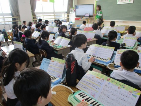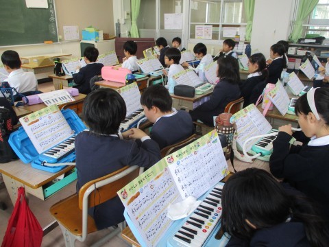 指の使い方に気をつけて,「夕やけ こやけ」を演奏していました。