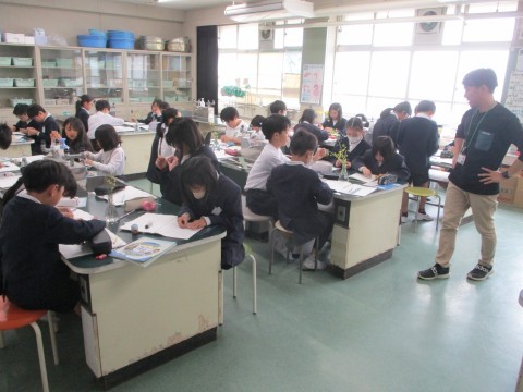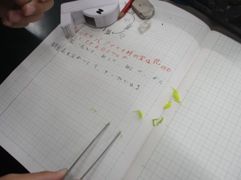ハボタンを分解して花びら・がく・おしべ・めしべに分けてノートに貼りました。