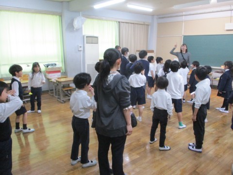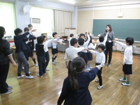 「あ!あっ!シ・マ・ウ・マ!」と司会が動物を見つけると,その名前の文字数で手をつないで座ります。シマウマの場合は4人で手をつなぎます。