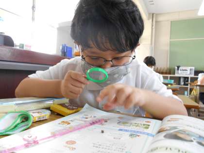 虫眼鏡の使い方を学習したあと,ホウセンカ,マリーゴールド,ひまわりのたねの観察をしました。