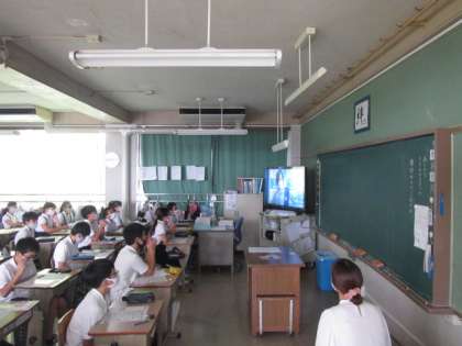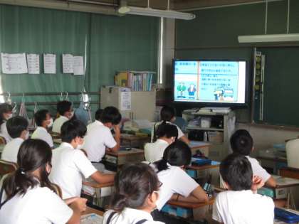 感染症対策として、朝礼と同じようにテレビを通して各教室で行いました。