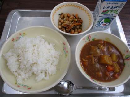 きょうは,お話し給食の日で,『給食番長』という本を紹介します。