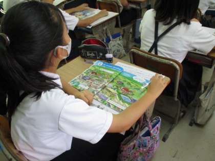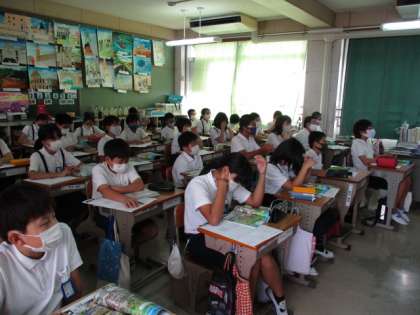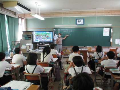 「Where am I?」と,みんなに質問し,それに答える形で,授業が進んでいます。結構,難しい内容が6年生に入っています。