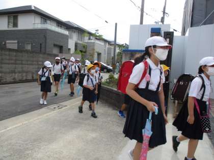 コロナ禍の中,大きな声で元気に挨拶するのは,少しはばかられますが,元気な足取りで,態度で登校してくださいね。
