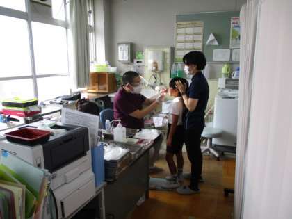 コロナ禍の中なので,フェースシールドをしたり,一人の検診が終われば,手袋を新しいものに変えたりと,いろいろと気を付けてくださっています。いつもありがとうございます。