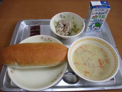 鶏肉の香草焼では,乾燥バジルを使っています。鶏肉とじゃがいもに。にんにく・塩・こしょう・バジル・オリーブオイル・パン粉をかけて焼いた大人気のメニューです。