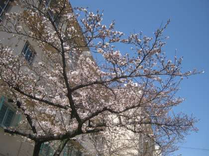 桜の開花が進み,三分咲きになりました。