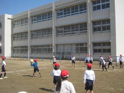 1年生もドッジボールを楽しんでいます。