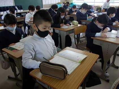 算数の学習が始まりました。教科書を開けると,まずは4年生までの学習を振り返るページがあります。さっそく学習のスタートです!意欲的に取り組む姿を見せてくれました。