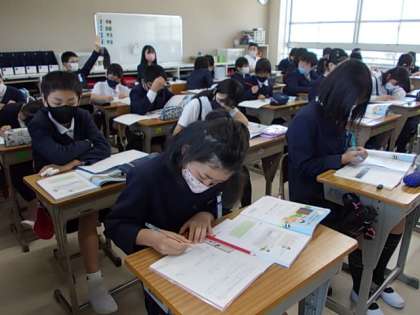 さっそく,学習が始まっています。6年生算数のスタートは分数のかけ算です。高学年になると日常生活の中で使うことがない計算が増えてきます。頭でイメージすることが難しいですが,図や絵などを使って考えます。