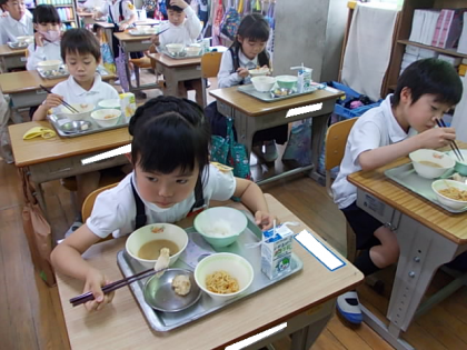 給食の時間が始まりました。みんなで味わっていただきましょうね♪