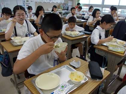 今日はドライカレー!なんとこのカレーの中には高野豆腐も入っているそうです。ヘルシーカレーですね。