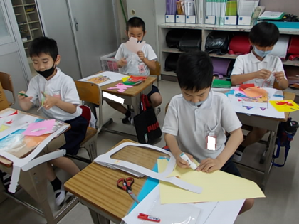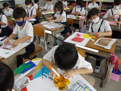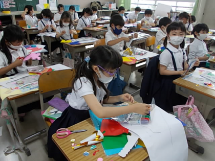 5月18日(火) 2年生図工「フェイスシールドで変身」♪