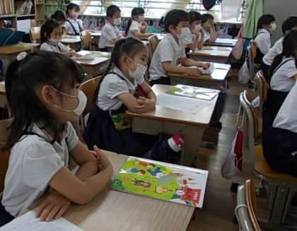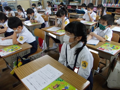明日,検尿があります。「今から大切なお話をするよ」という先生の言葉に反応し,しっかり聞く姿勢を作ることができています。みんな,すごい!