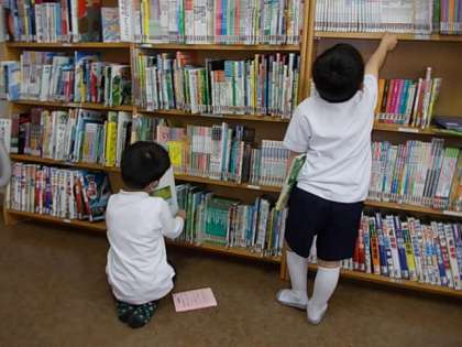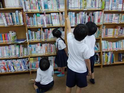図書室には興味深い本があふれています。今日はどの本にしようかな。探す時間も楽しい時間ですね。