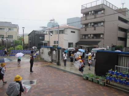 低学年は傘をさしての下校となりました。みんな,気をつけて帰ってね♪