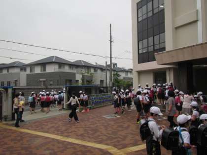 高学年の下校風景です。みんな,雨が降ってこないうちに急いで帰りましょう!