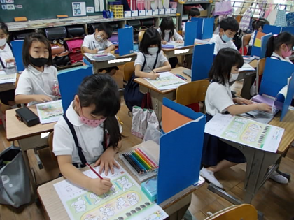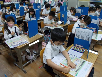 これからの小学校生活の中で何回も経験することになるテストの練習です。青ファイルを立て,集中できる環境の中で取り組みます。