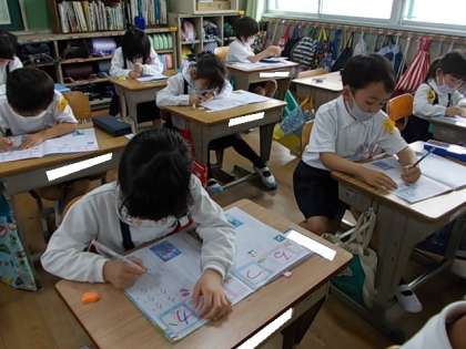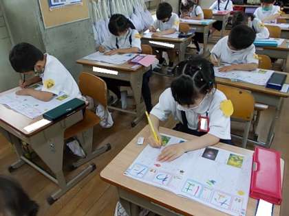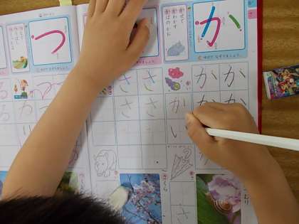 今日は2つのひらがな「か」「た」を学習しました。どちらもバランスが難しい字ですね。4つの部屋を意識しながら練習しました。