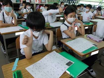 障がい者理解教育を進めています。今日は,「手話」について学んでいました。手話ができた理由,それがどれだけ貴重なものなのかをみんなで確認した後,自分たちも挑戦していました。