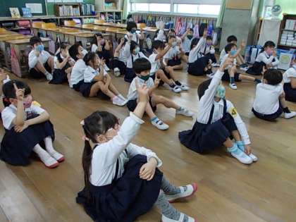 「右から3番目の人,手をあげましょう」