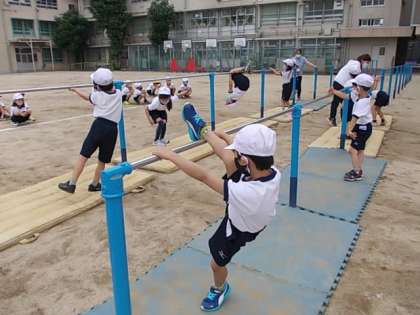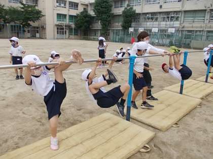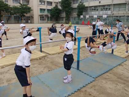 5月24日(月) 1年生体育「逆さになってみよう」♪