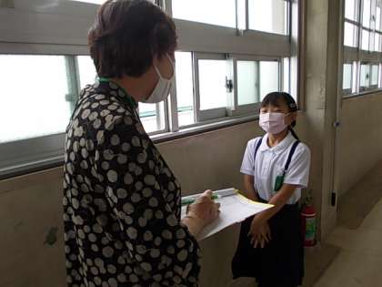 これまでの学習の振り返りの意味も込め,先生と英語で会話してみました。先生から聞かれたことに対し,みんな一生懸命英語で返事をしていました。