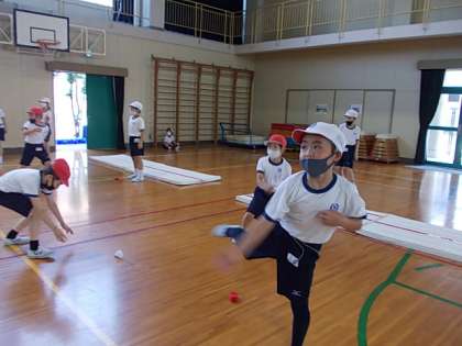 5月25日(火) 3年生体育「力いっぱい,ねらった方向に」♪