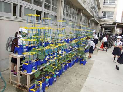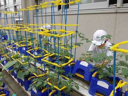 今日も水やり,がんばっています。みんなの熱心なお世話のおかげでどんどん成長していますね。