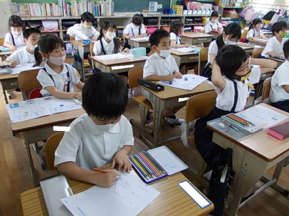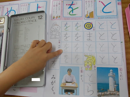 「と」と「を」を学習しました。バランスよく書けるよう,練習がんばっていました。