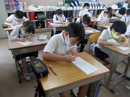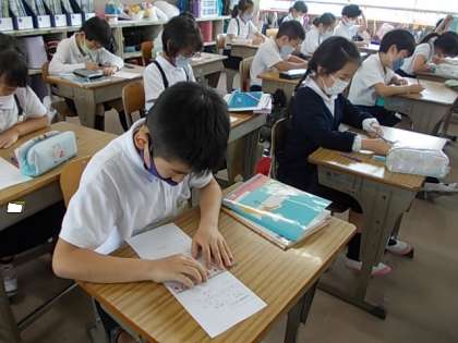 大きい数のたし算,ひき算に取り組んでいます。集中して練習問題に取り組んでいました。