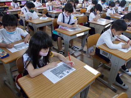 学校生活の中では自分自身で判断して動かなければいけないことがたくさんあります。教科書のイラストを見て,いいことなのかな,わるいことなのかな考えていました。