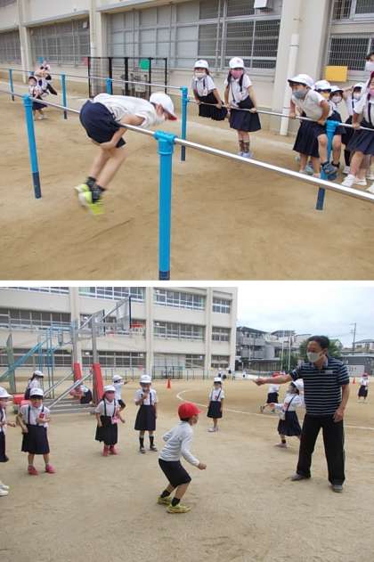 今日は,1,2年生が運動用を使います。ドッチボールや鉄棒,なわとび,…みんな元気いっぱい遊んでいます♪