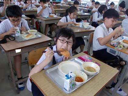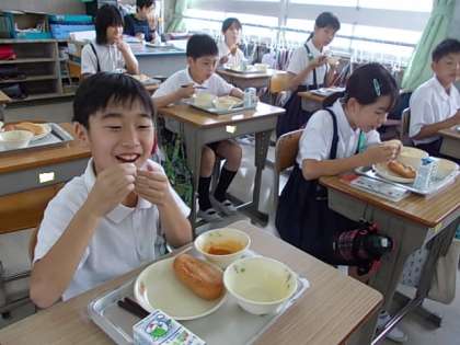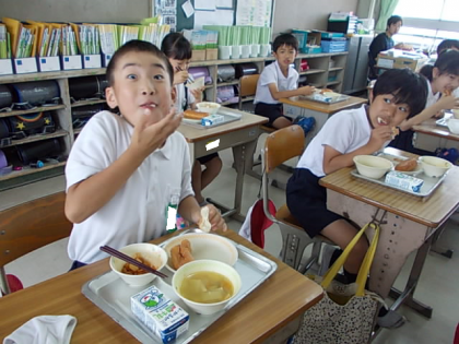 給食の時間が始まりました。よく噛んでしっかり食べます!