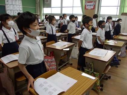 6月4日(金) 1年生音楽「校歌斉唱」♪