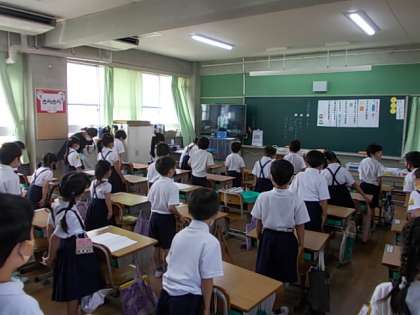 全校朝礼が始まりました。今日も代表委員会の児童のみなさんが,会を上手に進行してくれました。